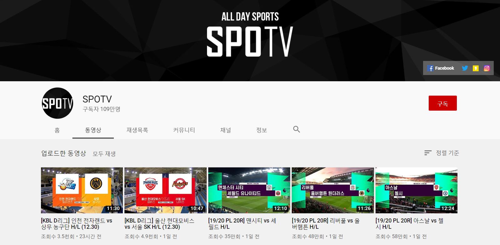 SPOTV 유튜브 채널 SPOTV는 TV에서 쉽게 접할 수 있는 케이블방송 채널입니다.